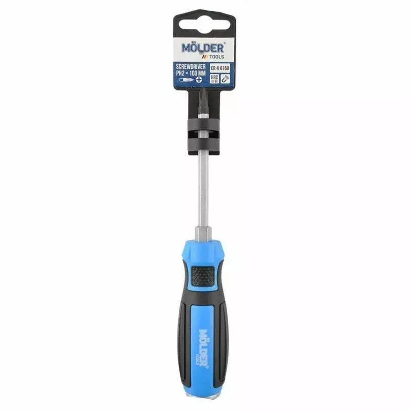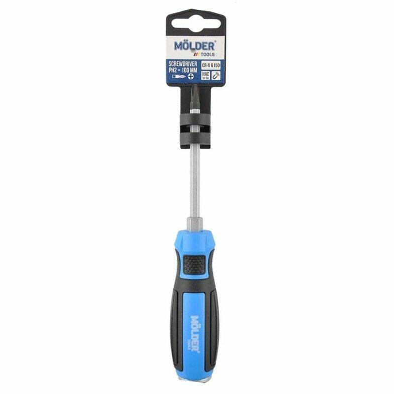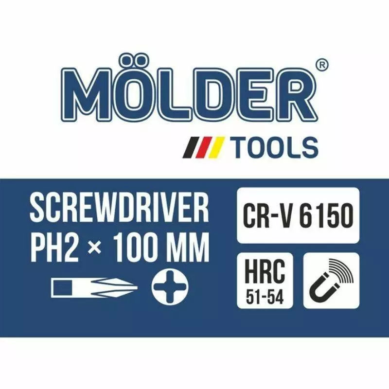 Отвертка крестовая, ударная с шестигранной опорой Molder, PH2x100mm (12шт/уп)