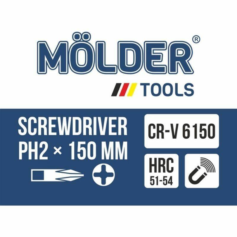 Отвертка крестовая, ударная с шестигранной опорой Molder, PH2x150mm (12шт/уп)
