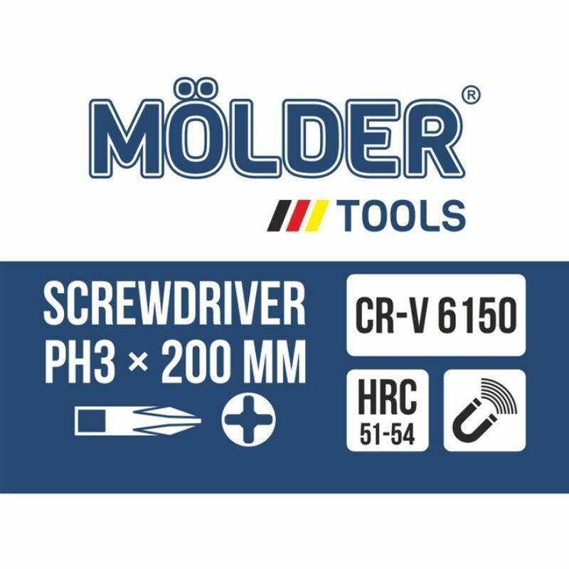 Отвертка крестовая, ударная с шестигранной опорой Molder, PH3x200mm (6шт/уп)