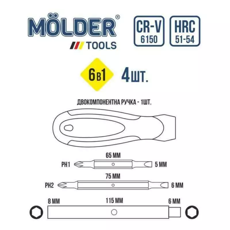 <p>Отвертка со сменными насадками Molder, 6 в 1
