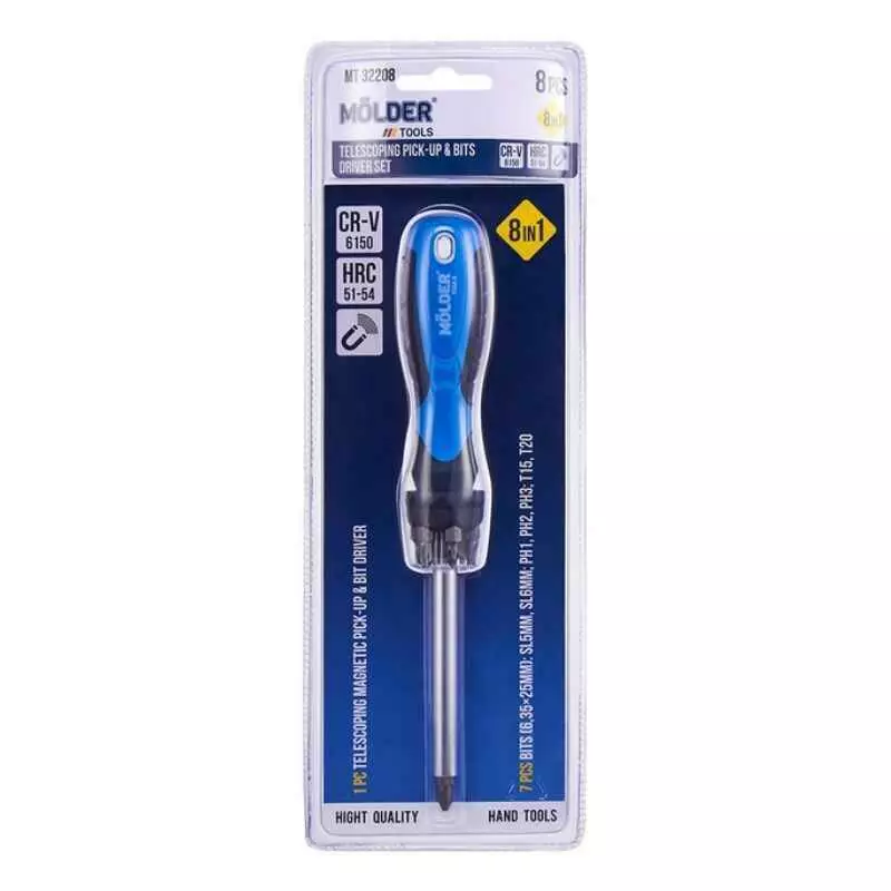 Отвертка с битами 8шт Molder CrV телескопический стержень с магнитным захватом PH SL Torx (MT32208)