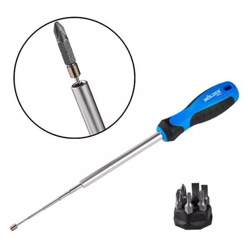 Отвертка с битами 8шт Molder CrV телескопический стержень с