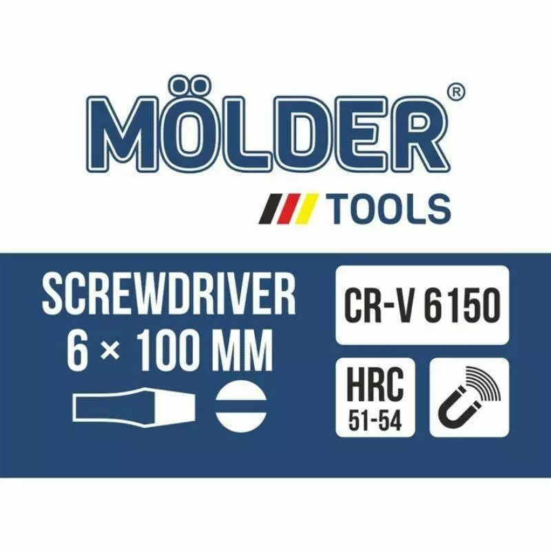 Отвертка шлицевая, ударная с шестигранной опорой Molder, SL6x100mm (12шт/уп)