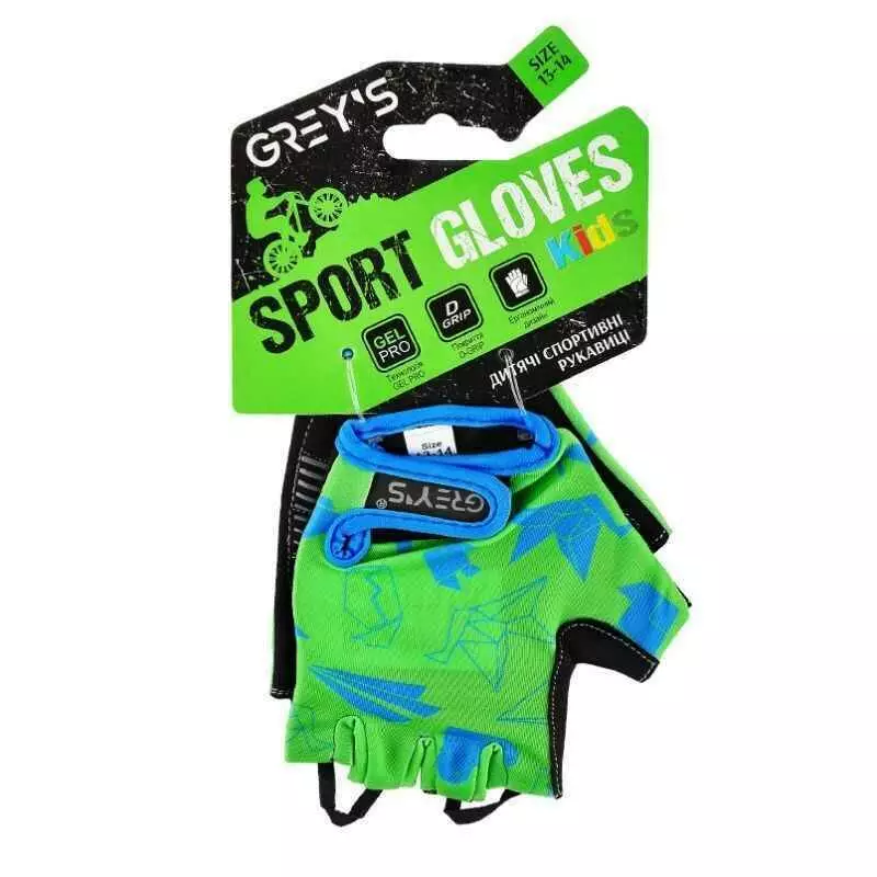 Перчатки велосипедные летние детские Grey's с застежкой открытые с коротким пальцем размер 13-14 (GR18715)