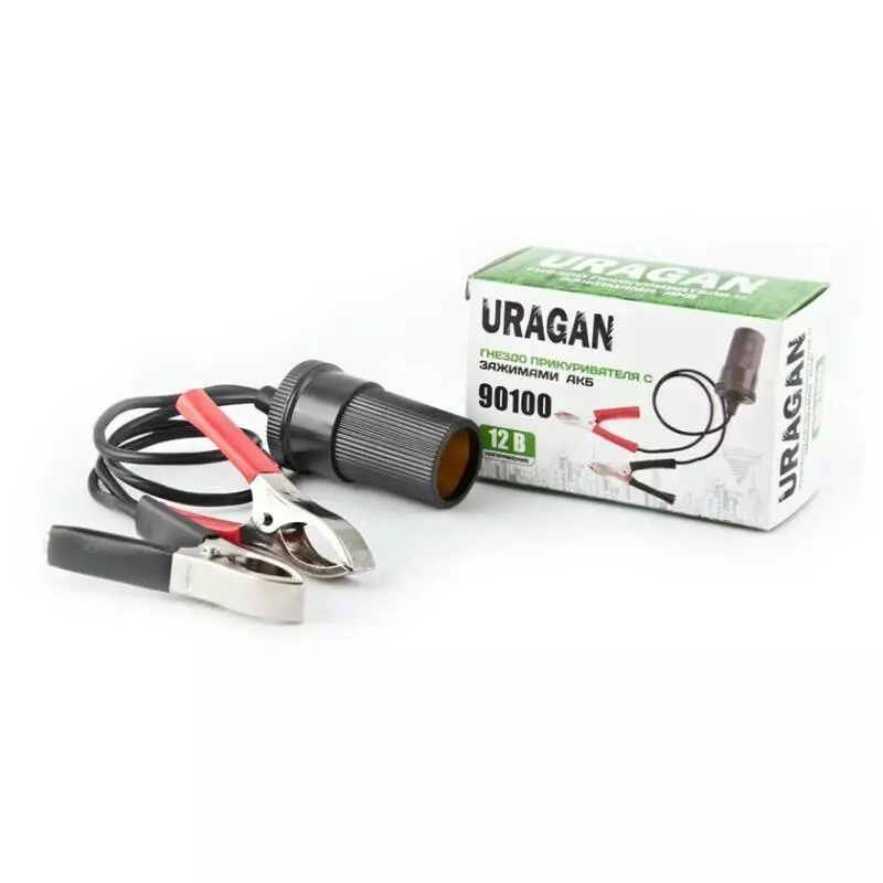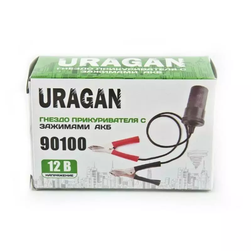Переходник Uragan с зажимами АКБ и гнездом прикуривателя 12 В 15 А 30 см 90100