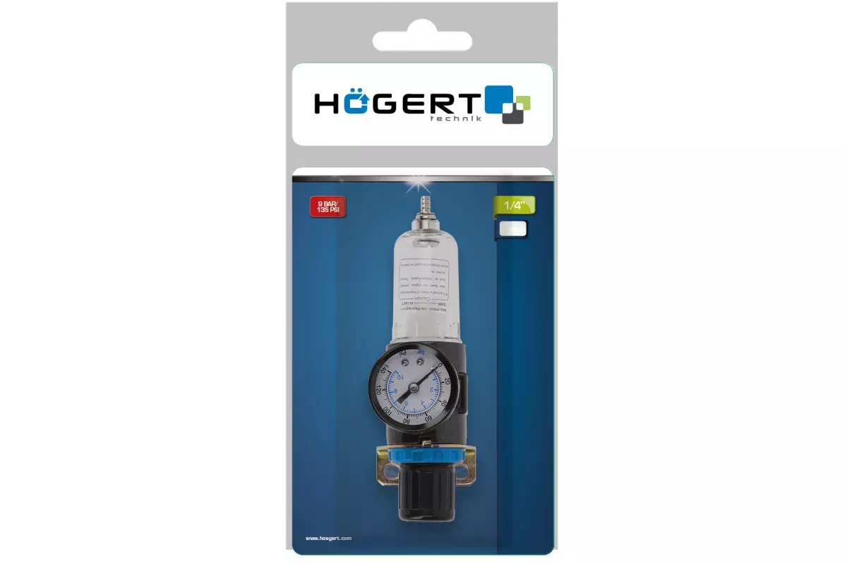 Пневматический фильтр-регулятор с манометром 1/4 90см³ рабочее давление 9 бар 135 PSI Hogert (HT4R872)