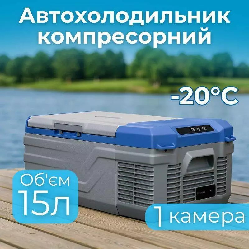 Портативный холодильник 15л Gearo автохолодильник компрессорный пластиковый 12/24В 220В (NL15)