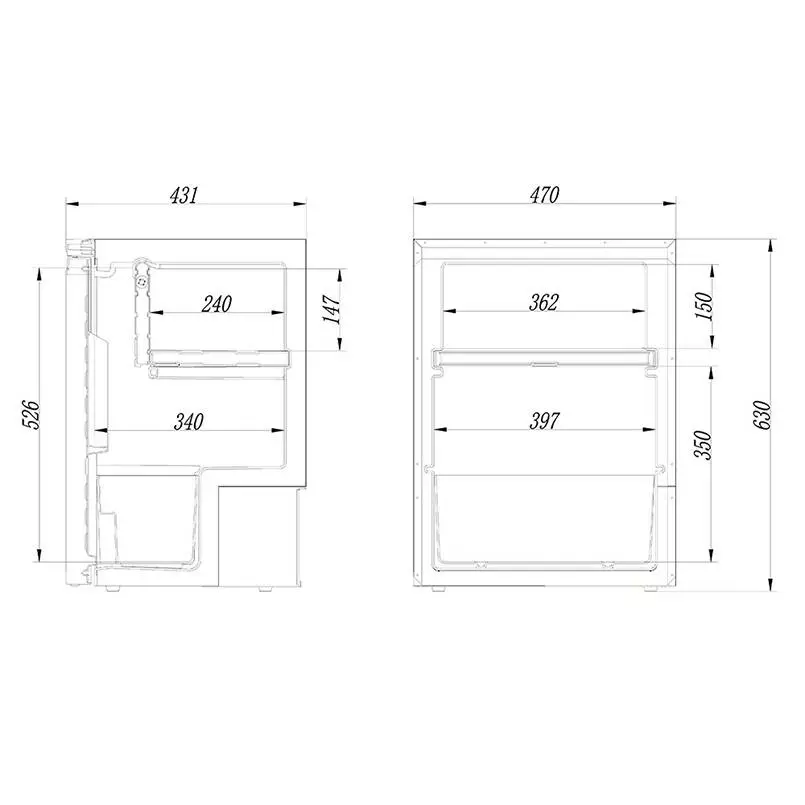 - Внутрішній розмір камер, мм: 1 кам. 362x240x147; 2 кам. 397х340х526