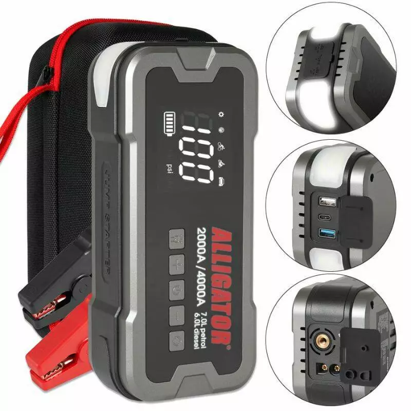 Пусковое устройство для авто Alligator 12В 2000-4000A с Power Bank 24000mAh и компрессором 10Атм (JS850)