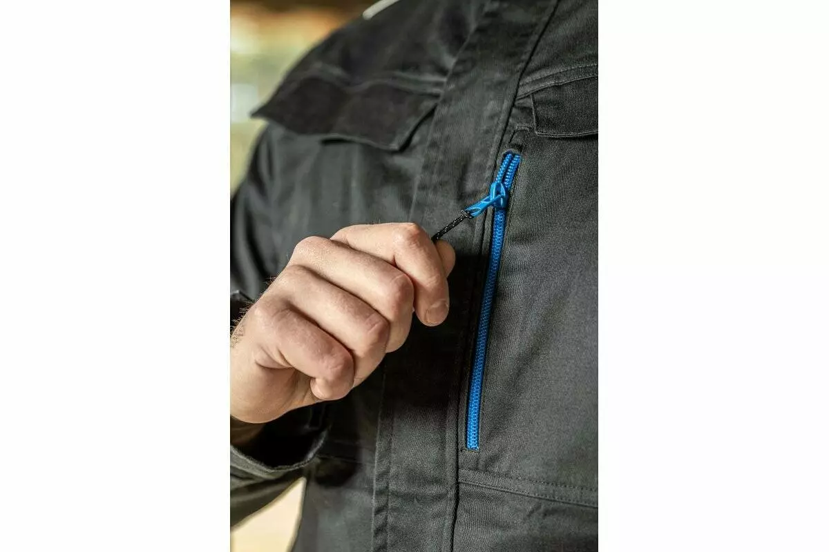 <p>Куртка изготовлена из комбинации хлопка, полиэстера и эластана. Это обеспечивает устойчивость к износу, простоту ухода и комфорт при ношении. Благодаря эластичности материала, движения не ограничены даже во время интенсивной работы. Укрепленные плечи защищают изделие от механических повреждений в местах повышенной нагрузки.</p>