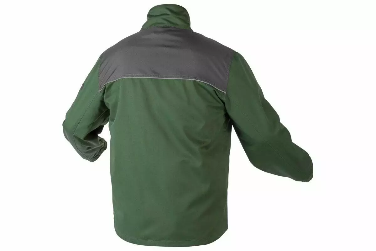 <p>Куртка выполнена из прочной ткани, которая сочетает натуральный хлопок и полиэстер. Это обеспечивает хорошую вентиляцию и износостойкость. Плотность материала 180 г/м² оптимальна для защиты тела от незначительных механических воздействий. Укрепленные плечи сохраняют форму и выдерживают дополнительные нагрузки. Манжеты на рукавах регулируются с помощью липучек, что позволяет подстроить рукава под индивидуальные потребности. Цвет темно-зеленый с темно-серыми вставками выглядит сдержанно и практично.</p>