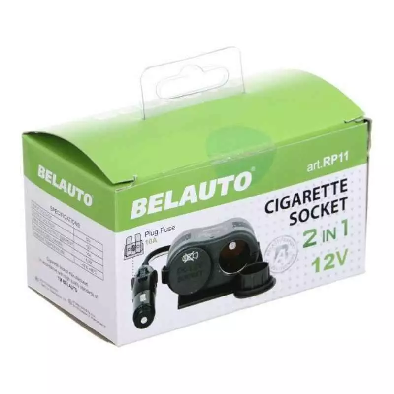 Разветвитель прикуривателя BELAUTO 2 гнезда 12В 10А 1.3 м (RP11)