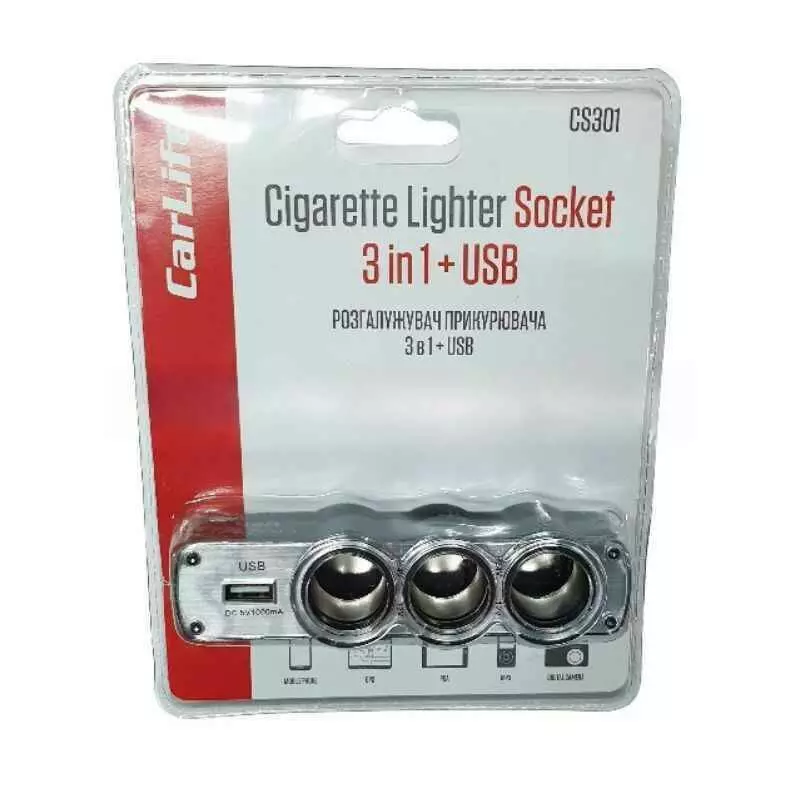 Разветвитель прикуривателя CARLIFE CS301 3в1 + USB