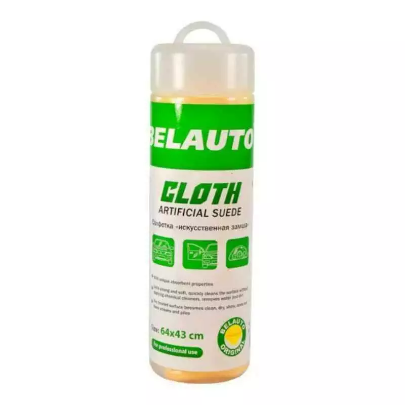 Салфетка влаговпитывающая из искусственной замши 64х43см BelAuto в тубусе желтая (CA28)