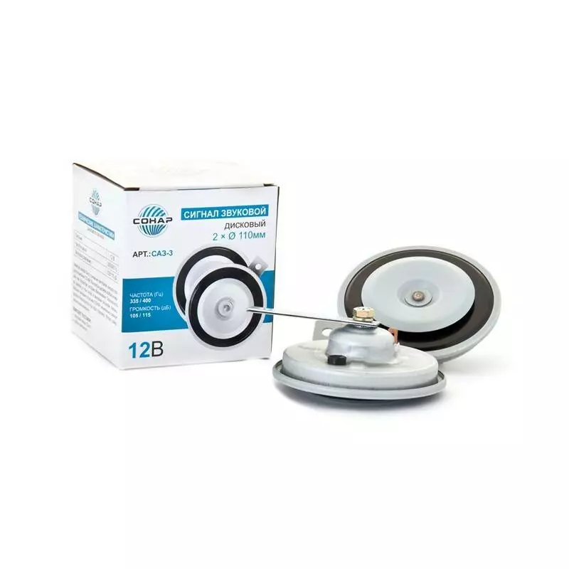 Сигнал автомобільний SONAR, дисковий з реле Ø110mm, 12В, 335/400 Гц, 105/115 дБ, 1 контакт, 2 шт.