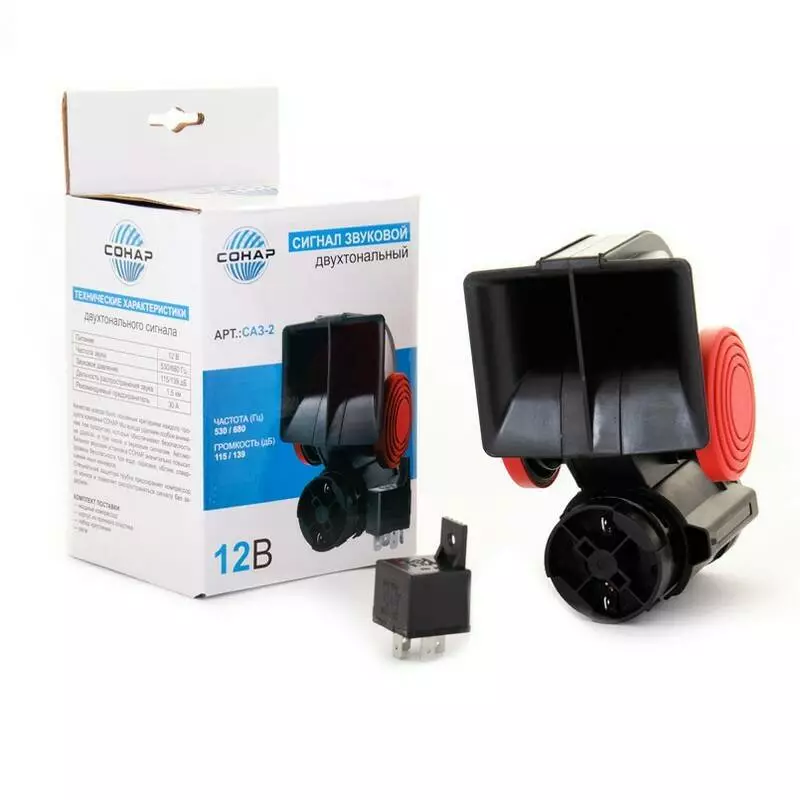 Сигнал автомобільний SONAR, двотональний з реле, 12В, 530/680 Гц, 115/139 дБ
