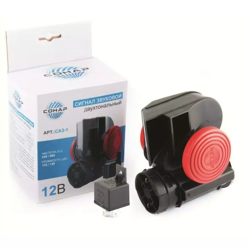 Сигнал автомобільний SONAR, "Compact", двотональний з реле, 12В, 530/680 Гц, 115/139 дБ