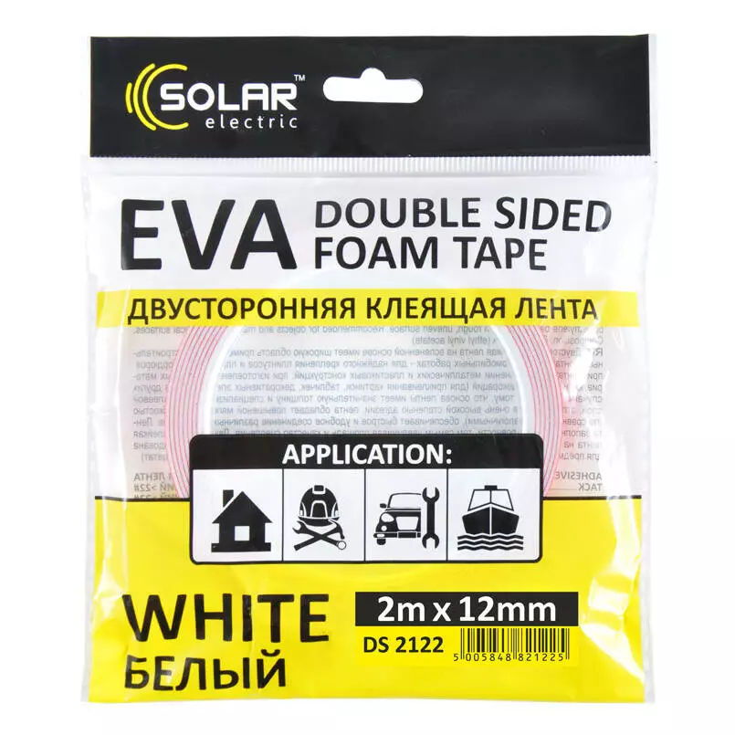 Скотч двусторонний SOLAR (DS2122) белый EVA 2м x 12мм