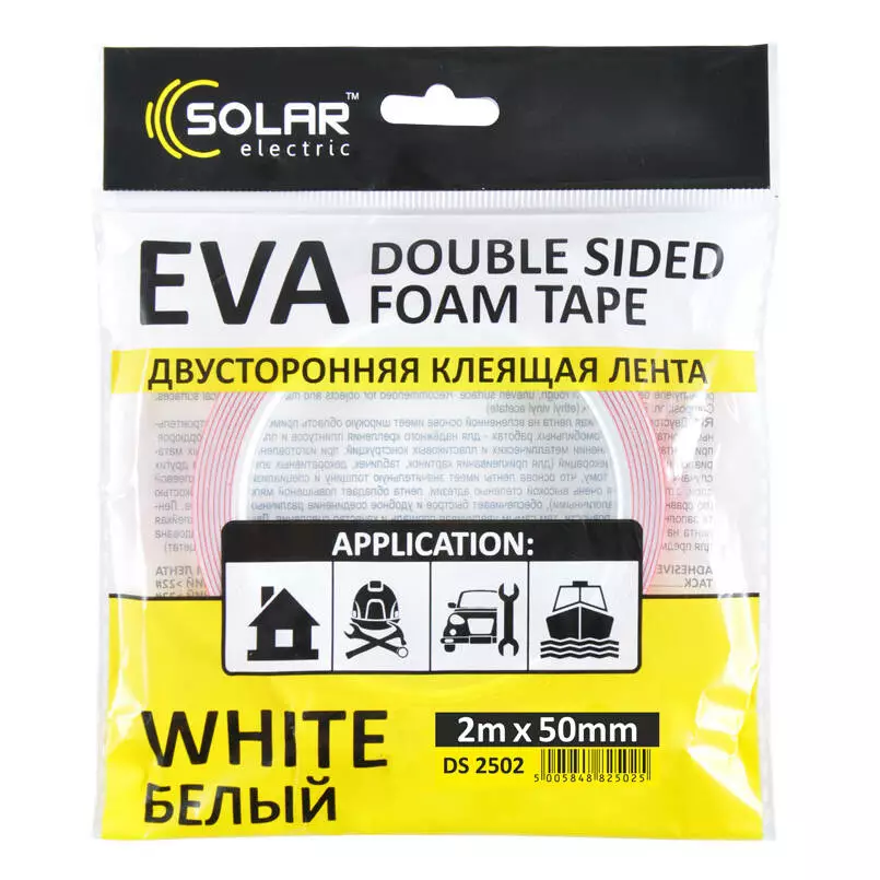 Скотч двусторонний SOLAR (DS2502) белый EVA 2м x 50мм