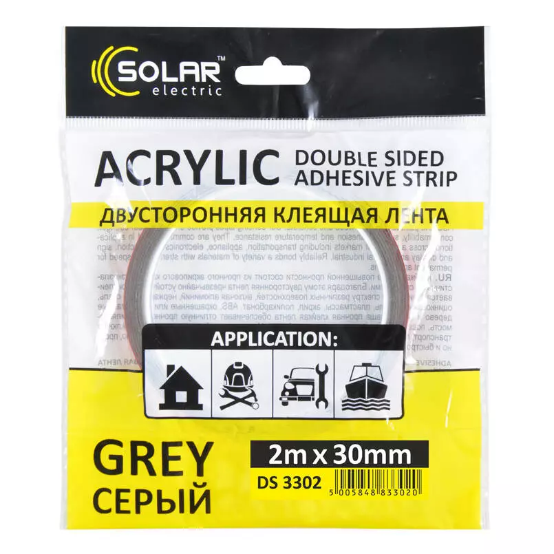 Скотч двусторонний SOLAR (DS3302) серый ACRYLIC (VHB) 2м x 30мм