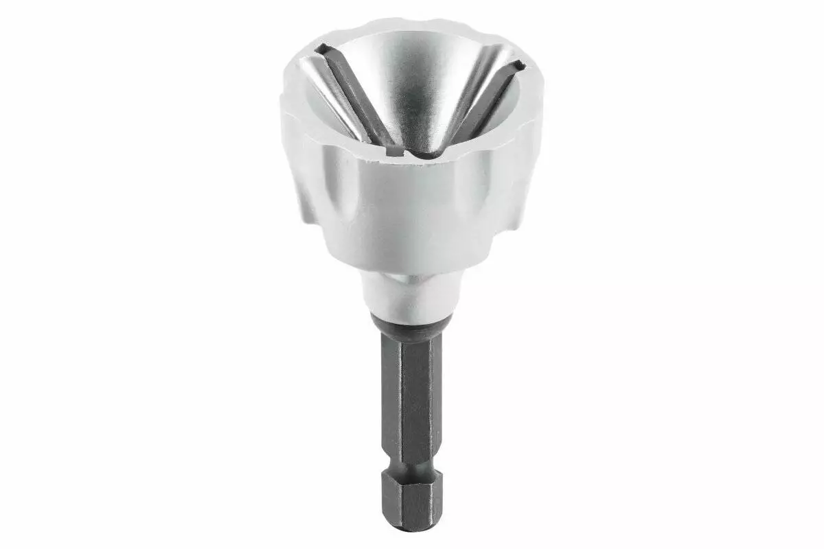 <p>Конструкция снимателя позволяет работать как вручную, так и с электроинструментом. Хвостовик 1/4" HEX обеспечивает быструю замену насадки. Рабочая часть инструмента изготовлена из материала, который выдерживает нагрузки при обработке металла. Благодаря универсальному размеру, сниматель подходит для широкого спектра задач в слесарных и монтажных работах.</p>