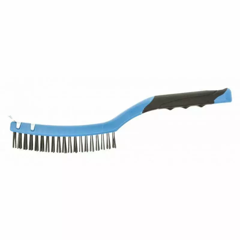 <p>Щетка оснащена тремя рядами стальной проволоки для усиленного воздействия на поверхность. Скребок позволяет удалять толстые наслоения грязи или ржавчины. Инструмент выдерживает регулярные нагрузки и подходит для длительной эксплуатации. Изделие выполнено из качественных материалов, что обеспечивает его долговечность.</p>