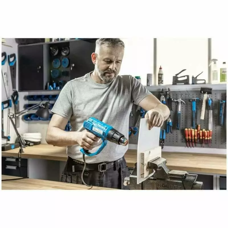 Фен подходит для снятия краски, формирования и сгибания пластика, сушки поверхностей, размораживания, монтажных и ремонтных работ. Благодаря пошаговой регулировке температуры и двум режимам потока воздуха, модель легко адаптируется к различным задачам.