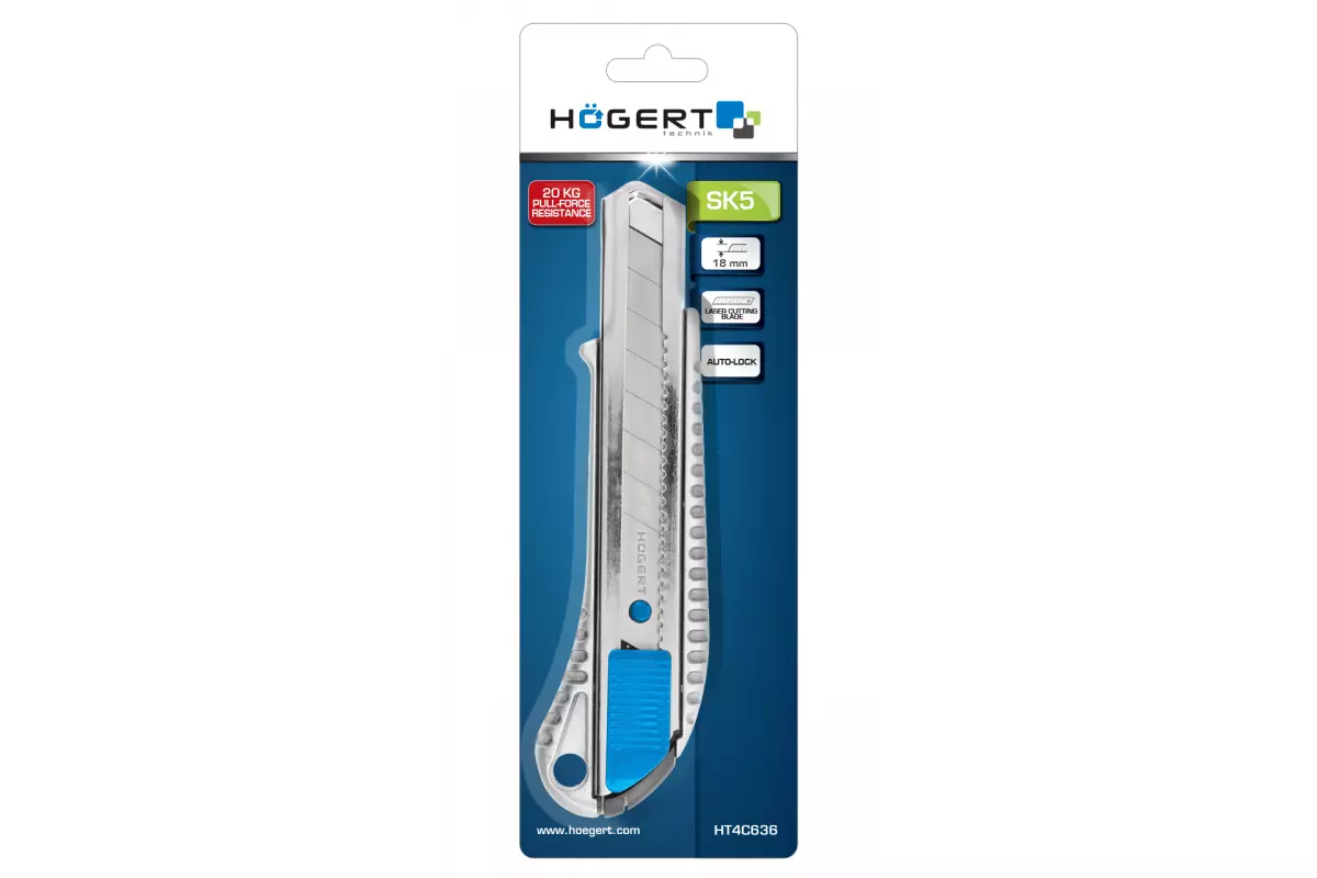 Строительный нож с сегментным лезвием 18 мм Hogert для точного реза (HT4C636)