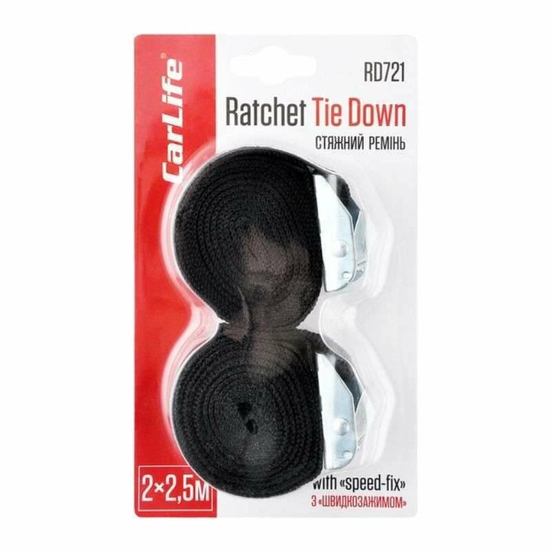 Стяжное ремни 3т 2.5м CarLife с быстрозажимным замком (RD721)