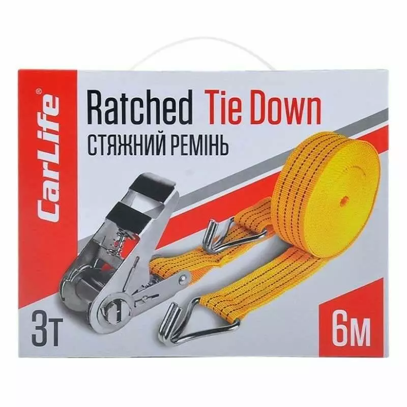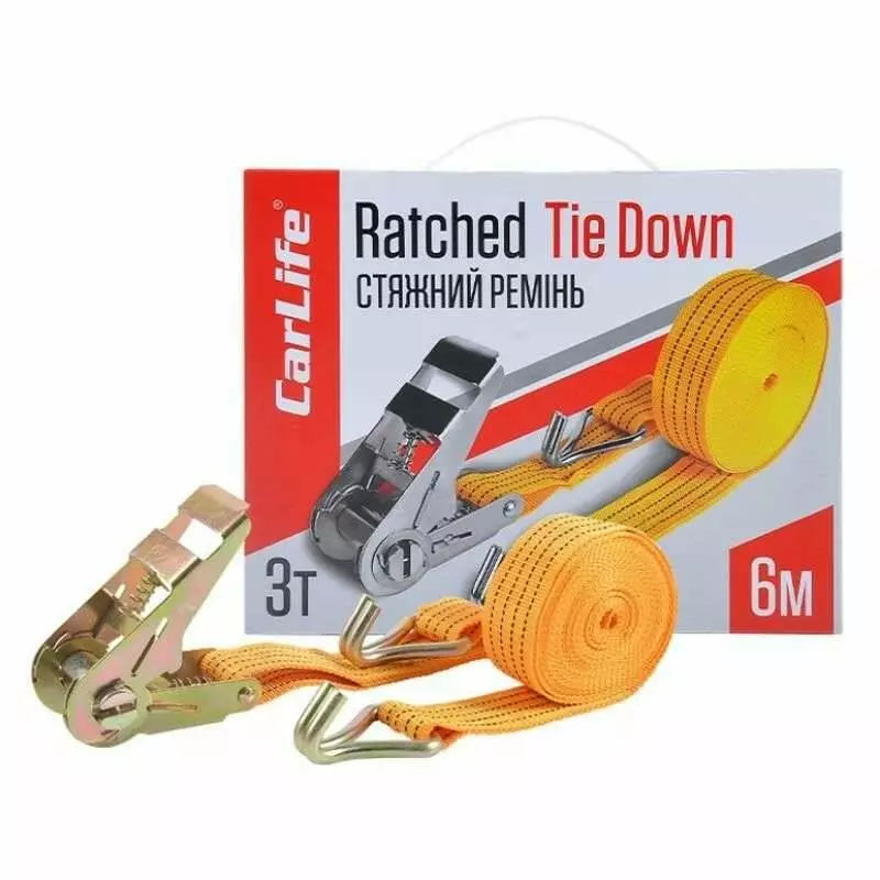 Стяжной ремень 3т 6м CarLife с храповым замком (RD712)