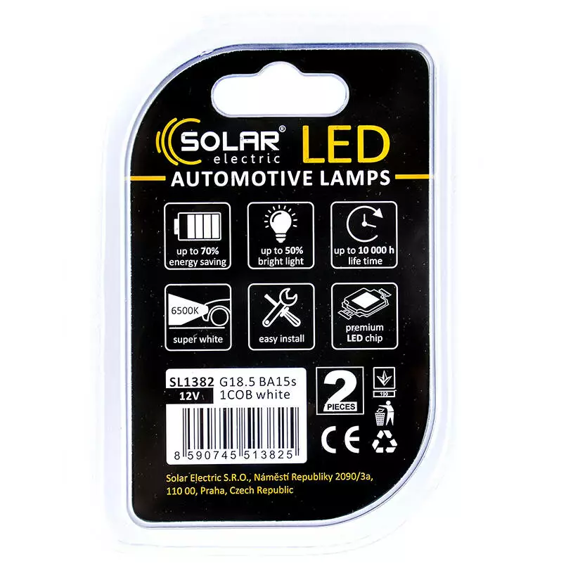 Светодиодные LED автолампы SOLAR Premium Line 12V G18.5 BA15s 1COB white блистер 2шт (SL1382)