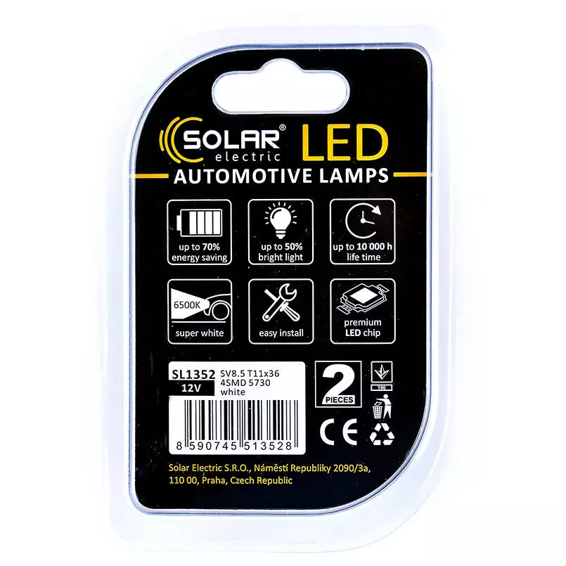 Светодиодные LED автолампы SOLAR Premium Line 12V SV8.5 T11x36 4SMD 5730 white блистер 2шт (SL1352)