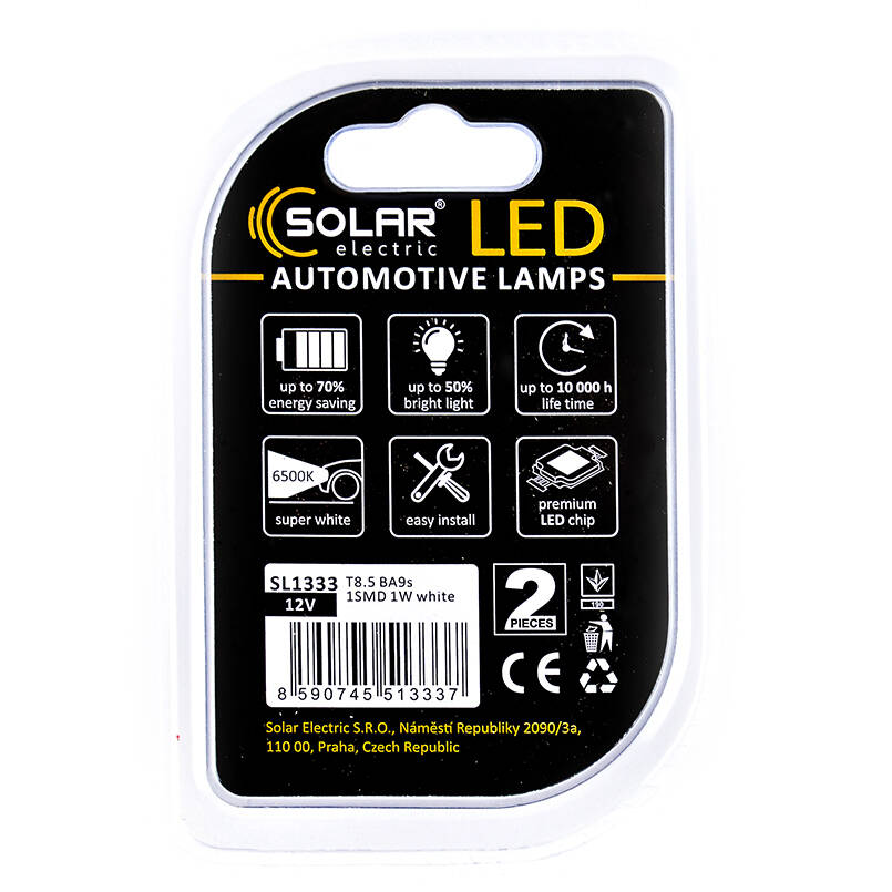 Светодиодные LED автолампы SOLAR Premium Line 12V T8.5 BA9s 1SMD 1W white блистер 2шт (SL1333)