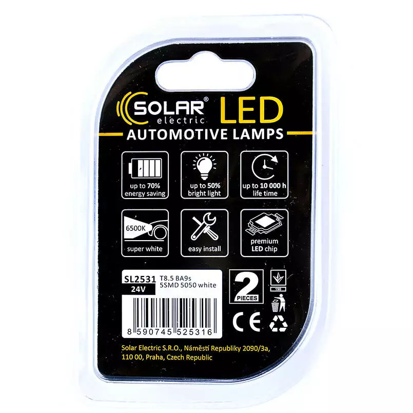 Светодиодные LED автолампы SOLAR Premium Line 24V T8.5 BA9s 5SMD 5050 white блистер 2шт (SL2531)