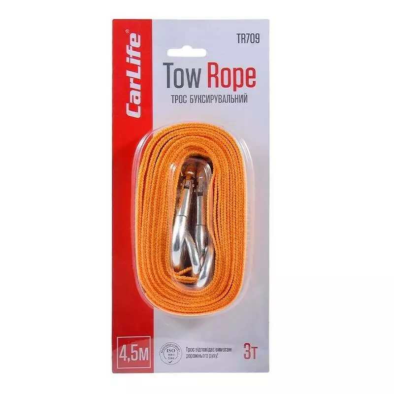 Трос буксировочный 3 т (4,5 м) CarLife с карабинами в блистере (TR709)