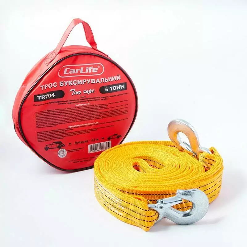 Трос буксировочный CARLIFE TR704 6 т 5,5 м в сумке