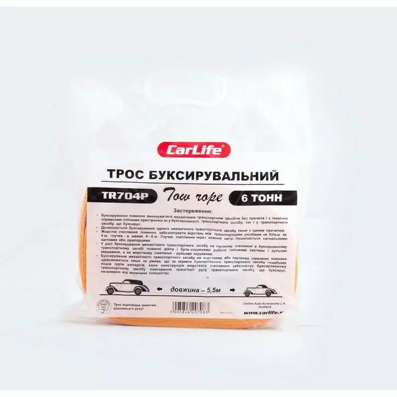 Трос буксировочный CARLIFE TR704P 6 т 5,5 м в пакете