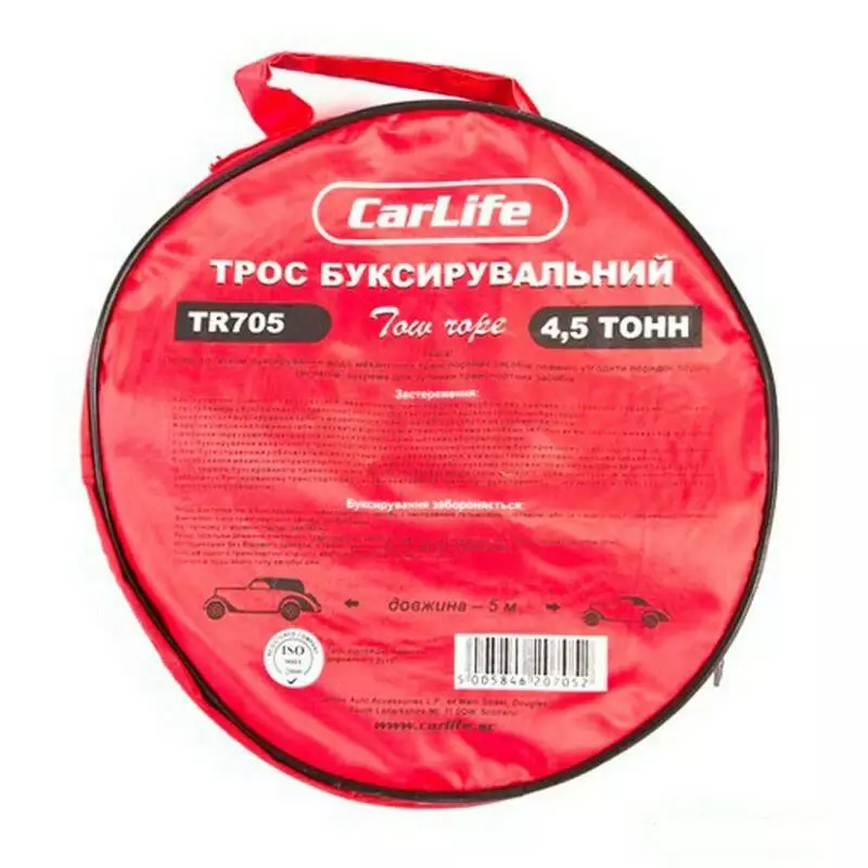 Трос буксировочный CARLIFE TR705 4,5 т 5 м в сумке