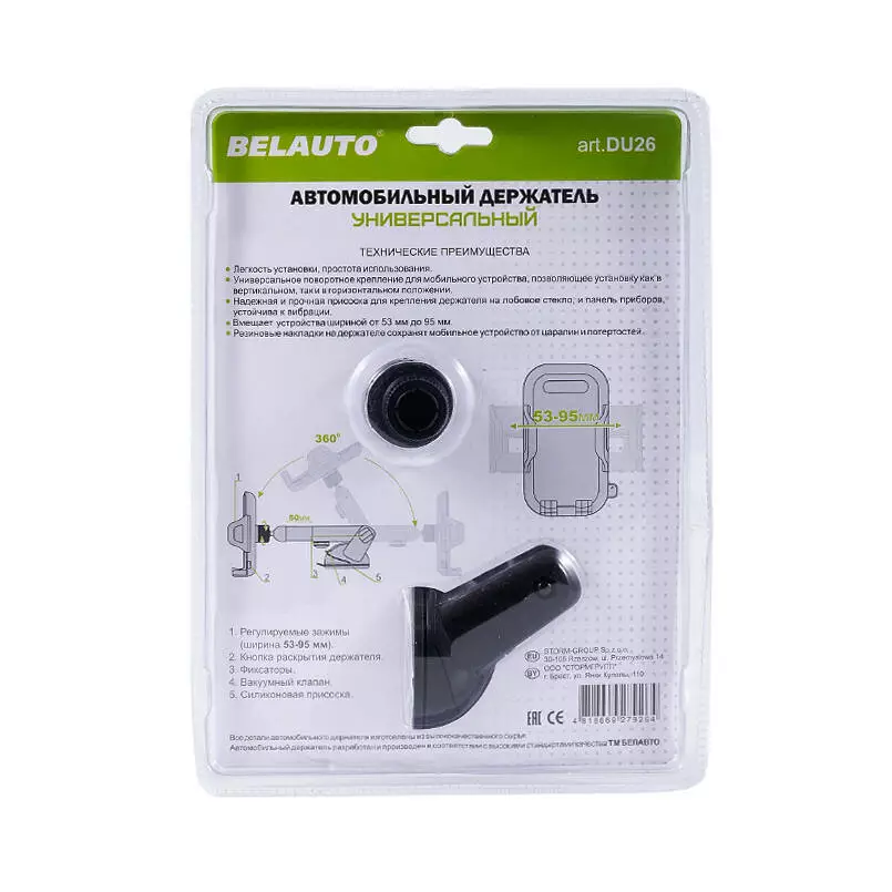 Универсальный автодержатель BelAuto DU26 — это простое и практичное решение для фиксации смартфона в салоне автомобиля. Он обеспечивает надежную поддержку, удобство использования и совместимость с многими телефонами.