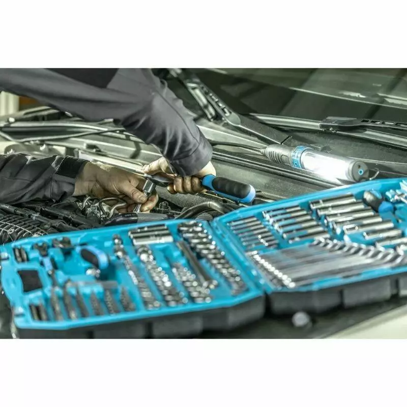 <li>Включает специализированные инструменты: свечные головки, карданные шарниры, удлинители</li>