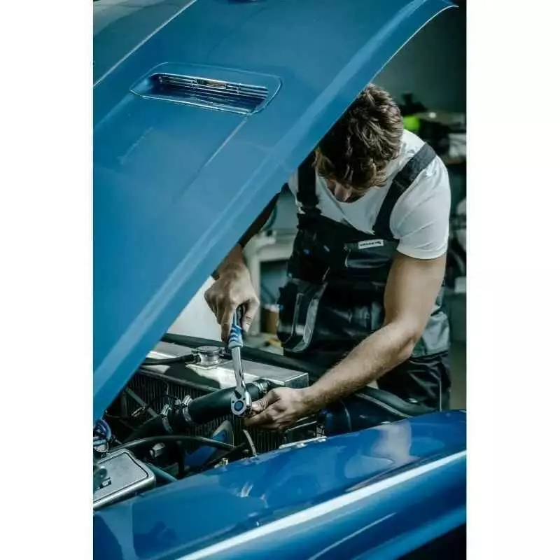 <p>Материалы CrV и CrMo отличаются стойкостью к деформациям, что важно при высоких нагрузках. Прямая форма трещотки обеспечивает простоту в использовании, а эргономичная рукоятка предоставляет комфорт во время длительных работ.</p>