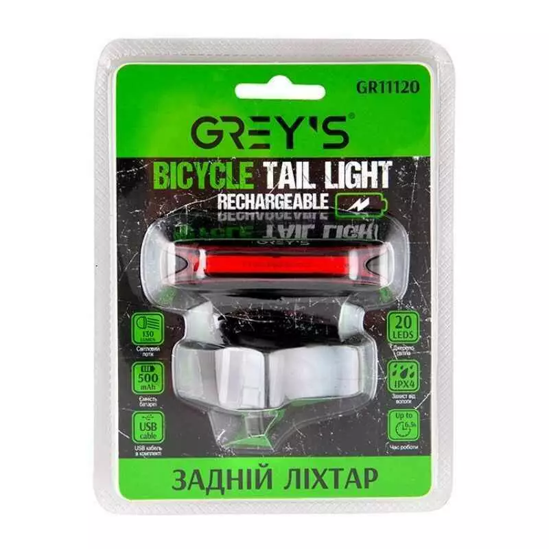 Задний фонарь на велосипед 20 светодиодов 130Lm Grey's 500mAh IPX4 6 режима до 6.5 часов работы (GR11120)