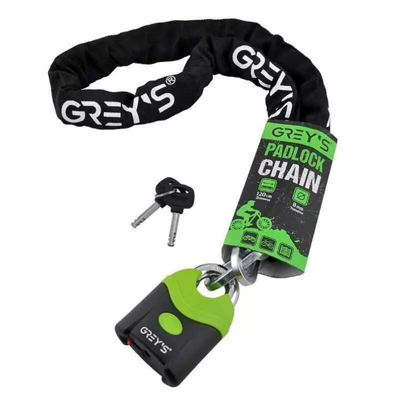 Замок на велосипед цепной 1200мм Grey's с навесным замком и 2 ключами (GR40812)