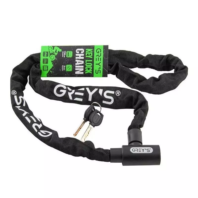 Замок на велосипед цепной 1500мм Grey's с замком и 2 ключами (GR41615)