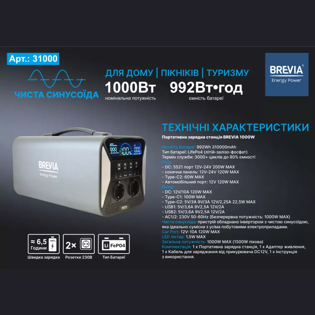 - Тип акумулятора: Літій-залізо-фосфатний (LifePO4)