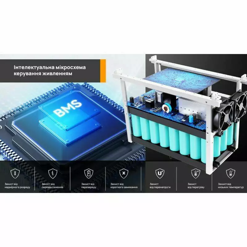 - Тип акумулятора: Літій-залізо-фосфатний (LifePO4)